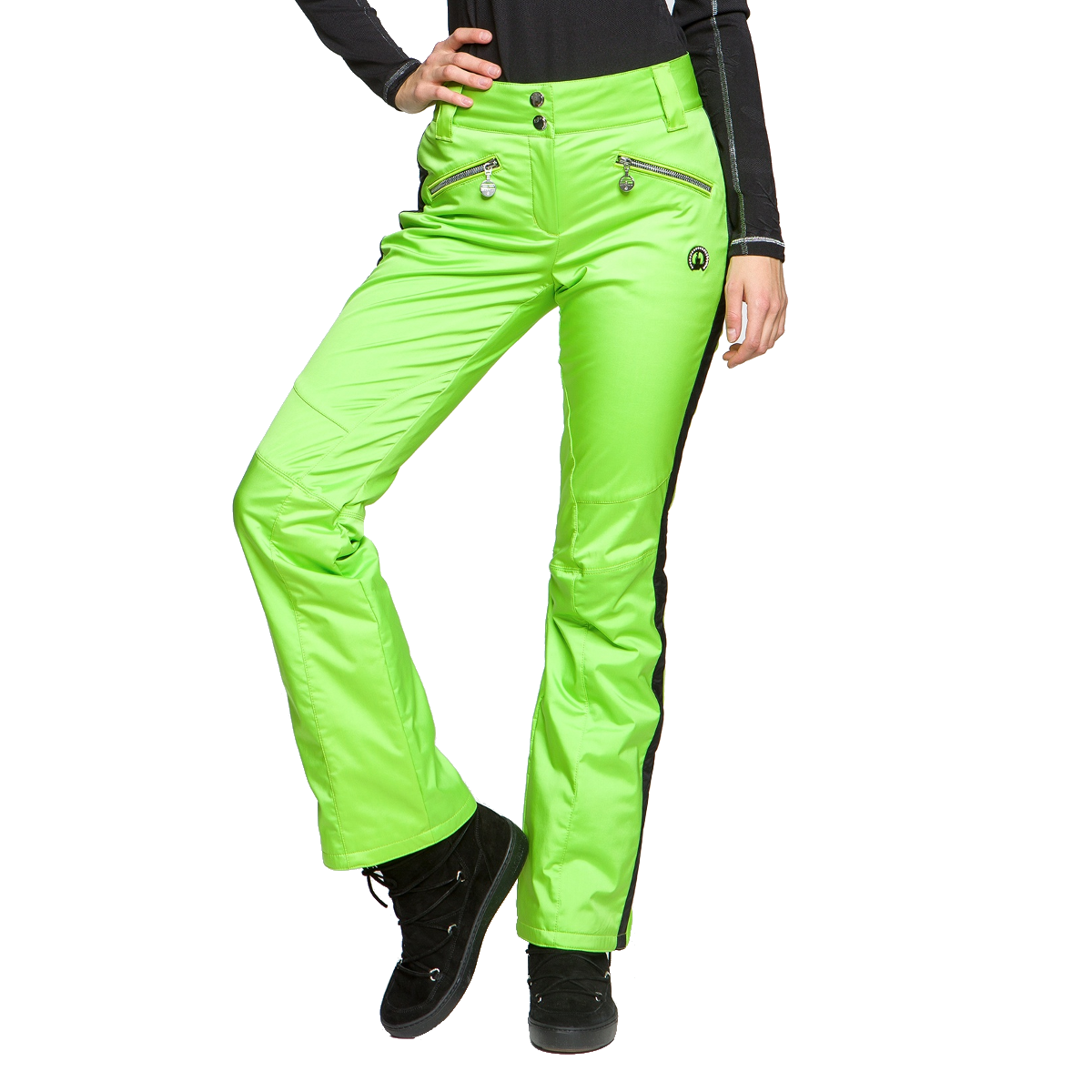 Два боковых кармана на молнии, застежка молния на штанинах и внутренний снеговой манжет.