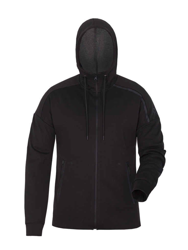 Куртка изготовлена из современного, приятного на ощупь материала – двухстороннего трикотажного пролотна Интерлок. Ткань прекрасно держит форму, имеет гладкую поверхность с обеих сторон и обладает повышенной теплоизоляцией.